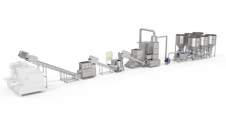 ◆ 自熟擠絲機熟透度可達83%以上,擠絲粗細、速度均勻PLC智能烘房實時對內部溫濕度進行調控,增加平溫保濕布局可讓烘。干后的粉塊直接進行包裝。