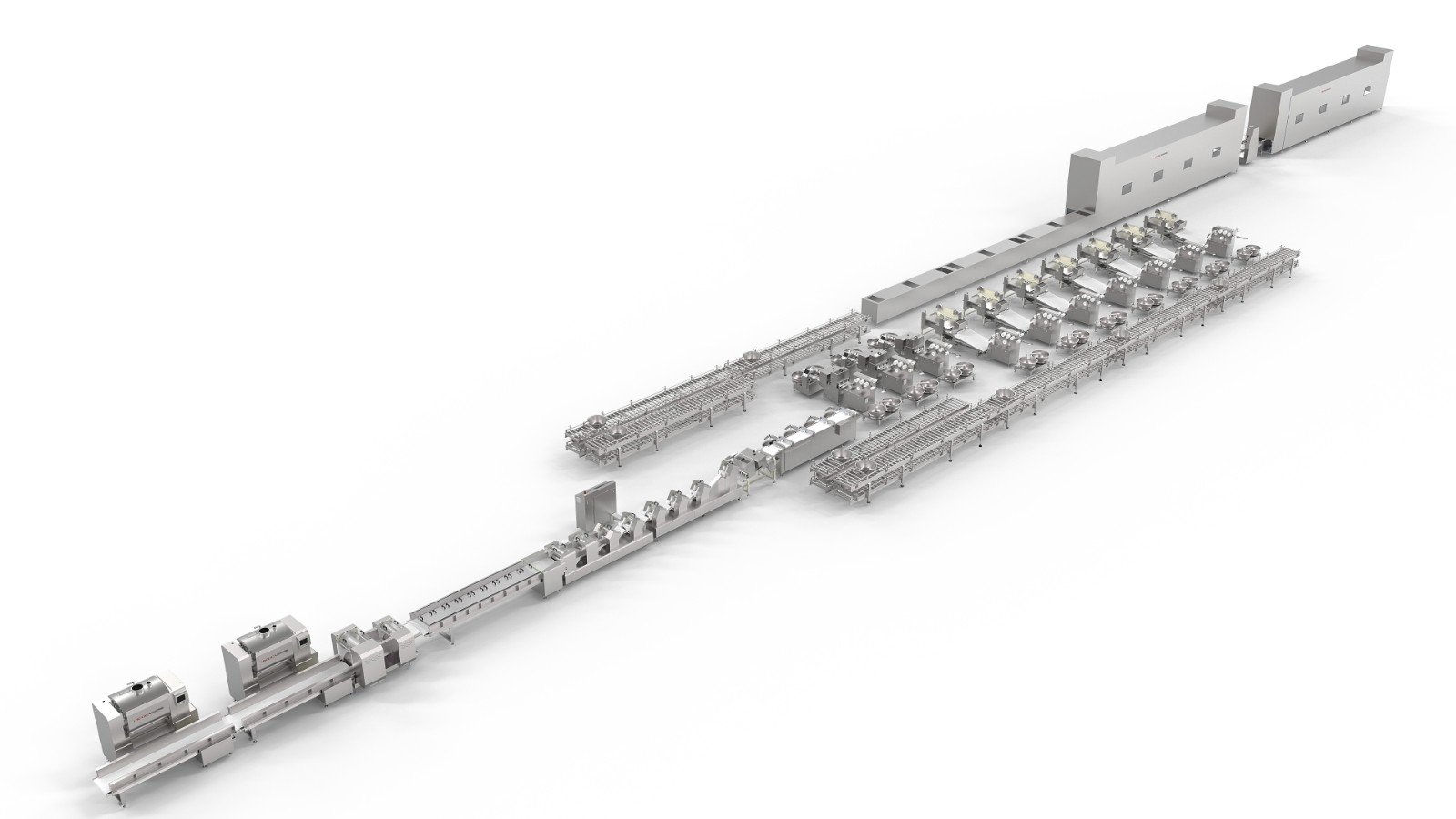 仿生手工拉面智能化生產線——自主研發制造的國內外首臺創新產品,該生產線通過和面醒發、漸縮壓延、切條盤盆、細拉上桿、步進提升、烘干切斷等工序,實現傳統生產手工拉面工藝,為企業滿足食品安全、高端產品轉型提供智能化服務。