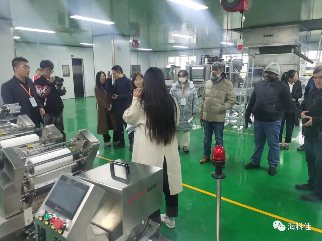 在食品工程聯合實訓基地,青島海科佳制造的“智能鮮濕面生產線”、“非油炸擠出面生產線”、“全自動手延空心面生產線”、“仿生饅頭/包子生產線”、“智能水餃生產線”等面制主食產品裝備向與會代表展現了現代化面食加工車間的嶄新形象,也向國際社會傳遞了中國機械裝備科技的硬核實力。