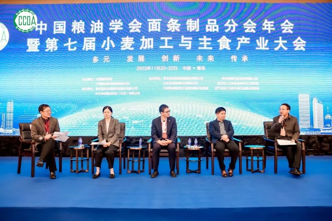 1121日,中國糧油學(xué)會面條制品分會年會暨第七屆小麥加工與主食產(chǎn)業(yè)大會在青島召開,本次大會由中國糧油學(xué)會面條制品分會主辦,青島??萍阎悄芸萍脊煞萦邢薰境修k,以“多元 發(fā)展 創(chuàng)新 未來 傳承”為主題,匯聚了來自全國的300余名知名專家學(xué)者,企業(yè)家、學(xué)生代表展開對話交流。