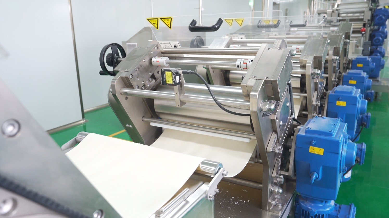 壓延階段是面筋網絡進一步形成和充分延展、交織的重要階段。傳統的壓延方式只是以一個方向對面片進行壓延,這樣在面片中形成的面筋網類型比較單一,面片的牢固程度和強度較為欠缺,在這一工藝上存在較大的改善空間。