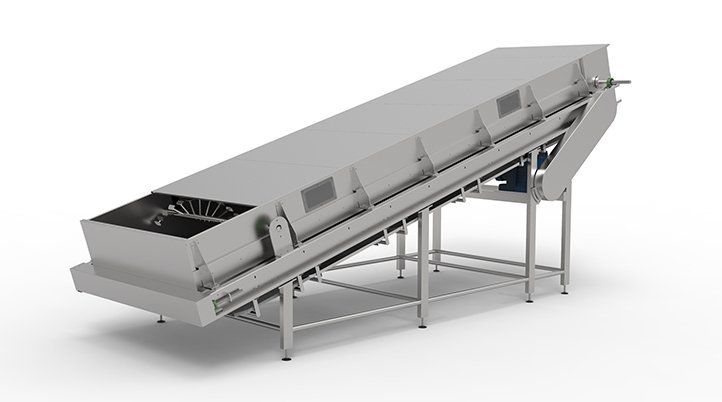 ◆內(nèi)外拖網(wǎng)動力獨立,拖網(wǎng)入口、出口間隙小,蒸網(wǎng)鏈條材質(zhì)為食品級不銹鋼。