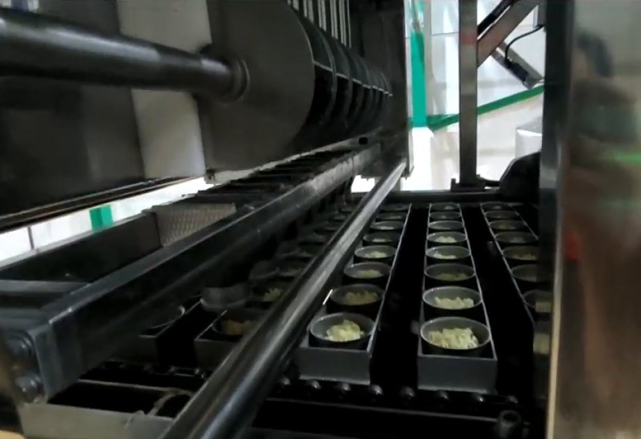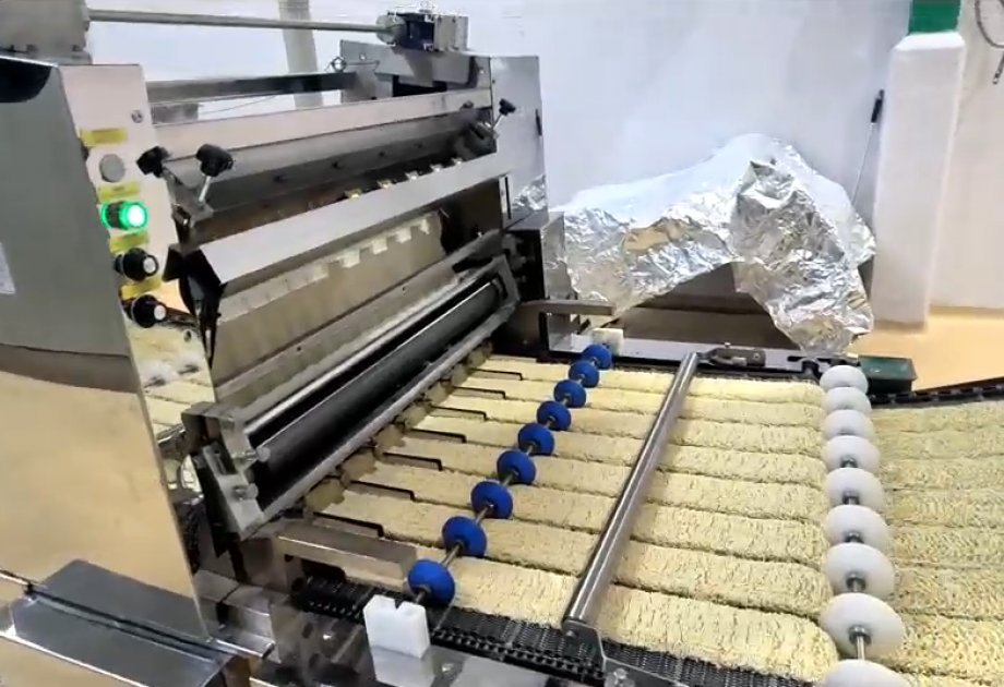 ◆將從蒸箱中送出的波紋熟面帶連續(xù)切斷入碗進行油炸或烘干